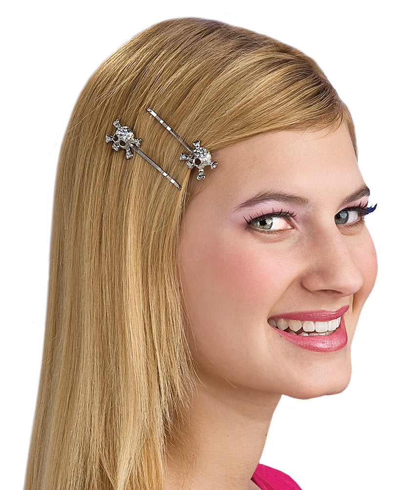Gothic Accessory Silver Skull Hair Pin With Rhinestone Jewels Walmart Com