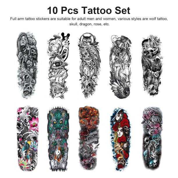 10pcs Fake Totem Sleeve Tattoo Stickers Eeekit Full Arm Temporary Tattoos Realistic Painless Fake Tattoos Semi Permanent Tattoos Wolf Skull Dragon Rose Tattoos Watercolor Body Art Arm Tattoos Walmart Com